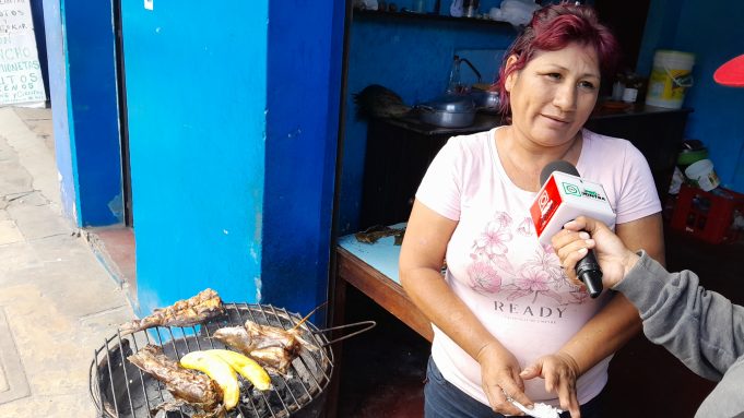 * Desde hace dos meses, Rosa Mercedes Dávila lucha cada día por mantener su pequeño puesto, donde ofrece asados, patarascas y tacacho al alcance del bolsillo.