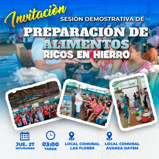 Les invitamos a participar en la Sesión Demostrativa de Preparación de Alimentos Ricos en Hierro, una actividad práctica pensada para fortalecer la alimentación saludable de nuestras familias.