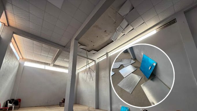 El cielo raso del salón de usos múltiples en el segundo piso de la Federación Regional de Folklore y Cultura de Puno colapsó tras una intensa lluvia y granizada. A apenas siete meses de su entrega, la estructura ornamental se desplomó evidenciando deficiencias en materiales y ejecución de la obra que demandó alrededor de 60 mil soles en la gestión anterior presidida por Néstor Hancco.
