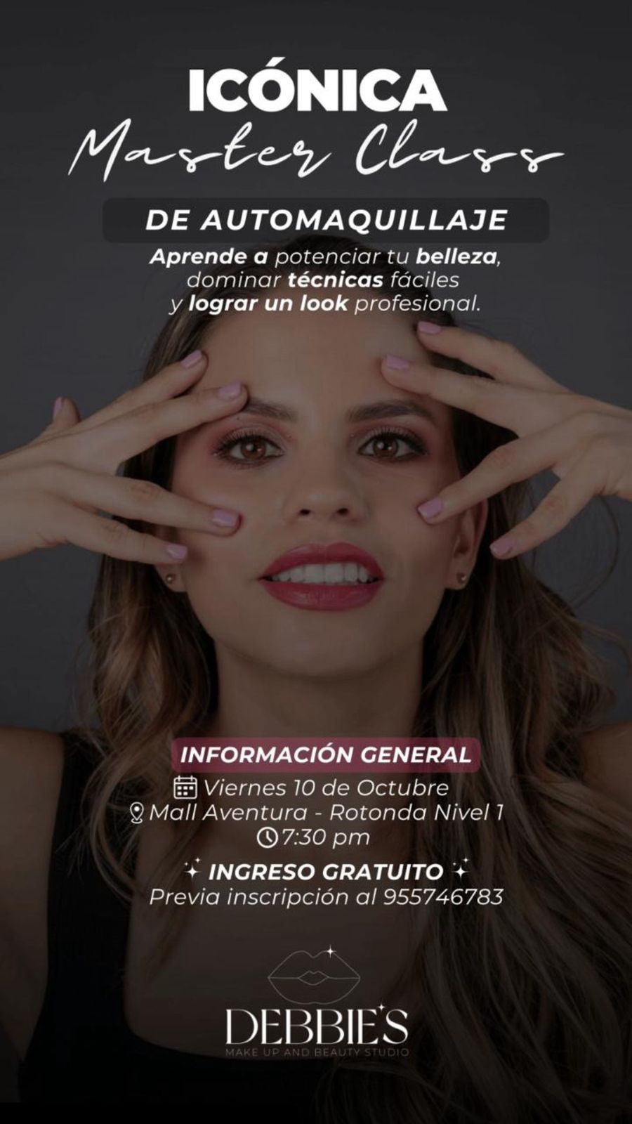 Débora Isabel Malca Rodríguez, gerente de Debbies y con casi nueve años de experiencia en el rubro del maquillaje, anunció la realización de su Iconic Masterclass de automaquillaje en Iquitos. El evento, de ingreso libre, se desarrollará este viernes 10 de octubre a las 7:30 p.m. en el Mall Aventura. Durante la clase, los asistentes aprenderán rutinas de cuidado de piel, técnicas para maquillaje de día y de noche, y consejos para resaltar rasgos de manera natural.
