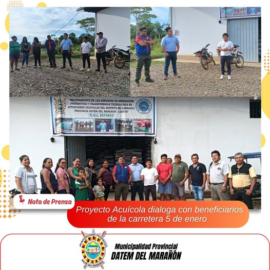 Con el firme compromiso de seguir impulsando el desarrollo productivo en nuestra provincia, la Municipalidad Provincial de Datem del Marañón, a través del Proyecto Acuícola, realizó una importante jornada de diálogo con los beneficiarios de la Carretera 5 de Enero.