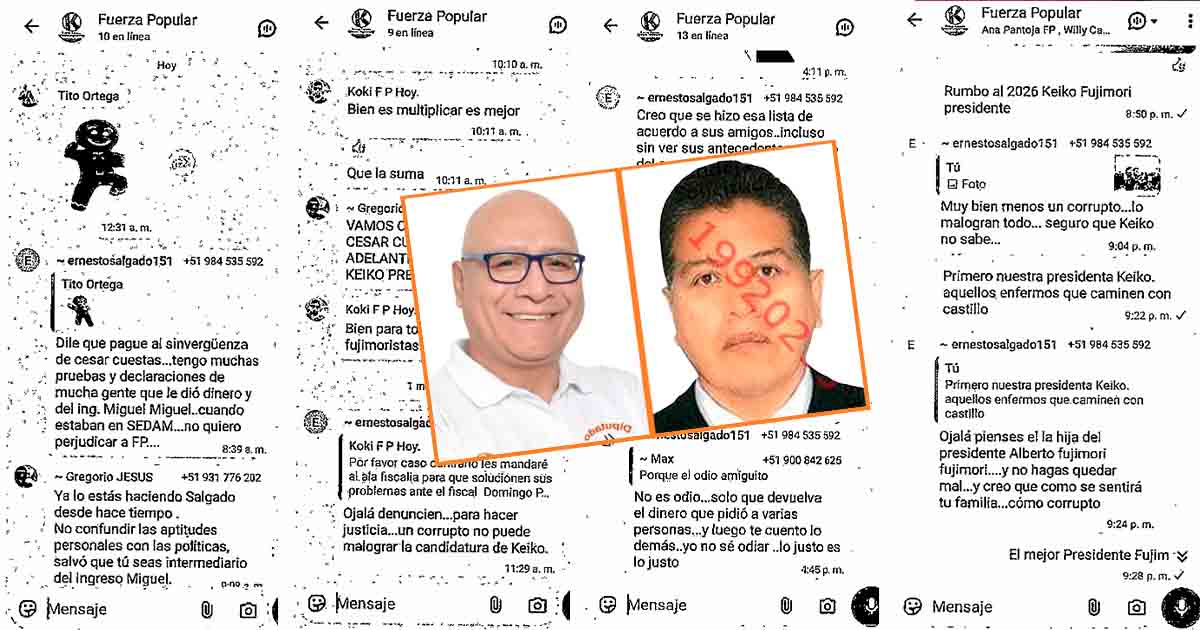 Al interior de Fuerza Popular en la región Junín, las tensiones no son nuevas. Sin embargo, en los últimos meses se han vuelto más visibles. La primera señal apareció en capturas de pantalla de un grupo de WhatsApp del partido.
