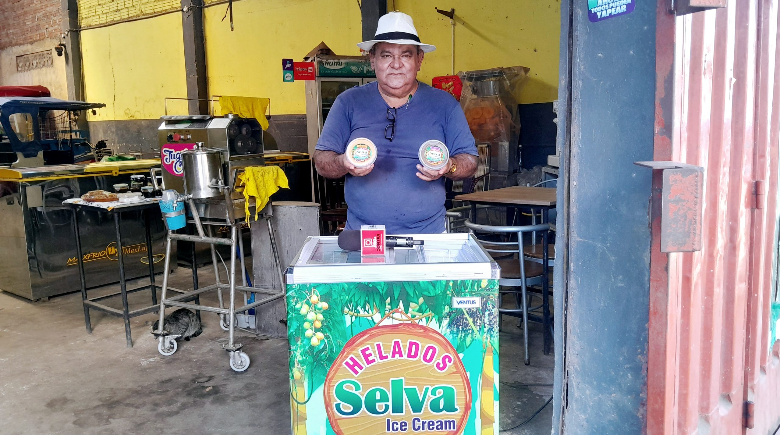 Leoncio Augusto Vela Alonso, emprendedor loretano, puso en valor las frutas regionales con la elaboración de helados artesanales de aguaje, copoazú, huasaí y chicha morada. A través de su marca “Ice Cream Selva”, Vela busca que los consumidores experimenten nuevos sabores que mezclan tradición y creatividad. Además, incursiona con un helado de queso arequipeño, que tiene buena acogida entre los clientes.