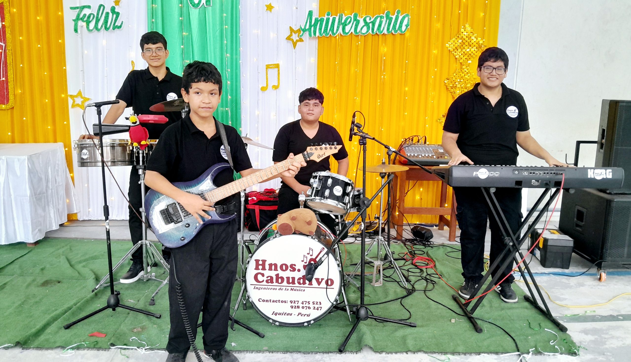 La orquesta “Hermanos Cabudivos” se formó en plena pandemia, cuando Lucas y su hermano empezaron a practicar guitarra por cuenta propia. Aquellos ensayos improvisados se convirtieron en su primera base musical. Con el retorno a clases, Lucas sintió que su propuesta necesitaba más instrumentos y decidió incorporar a dos compañeros del Colegio Rosa Agustina Donayre de Morán, a quienes enseñó percusión y partes básicas para completar el grupo.