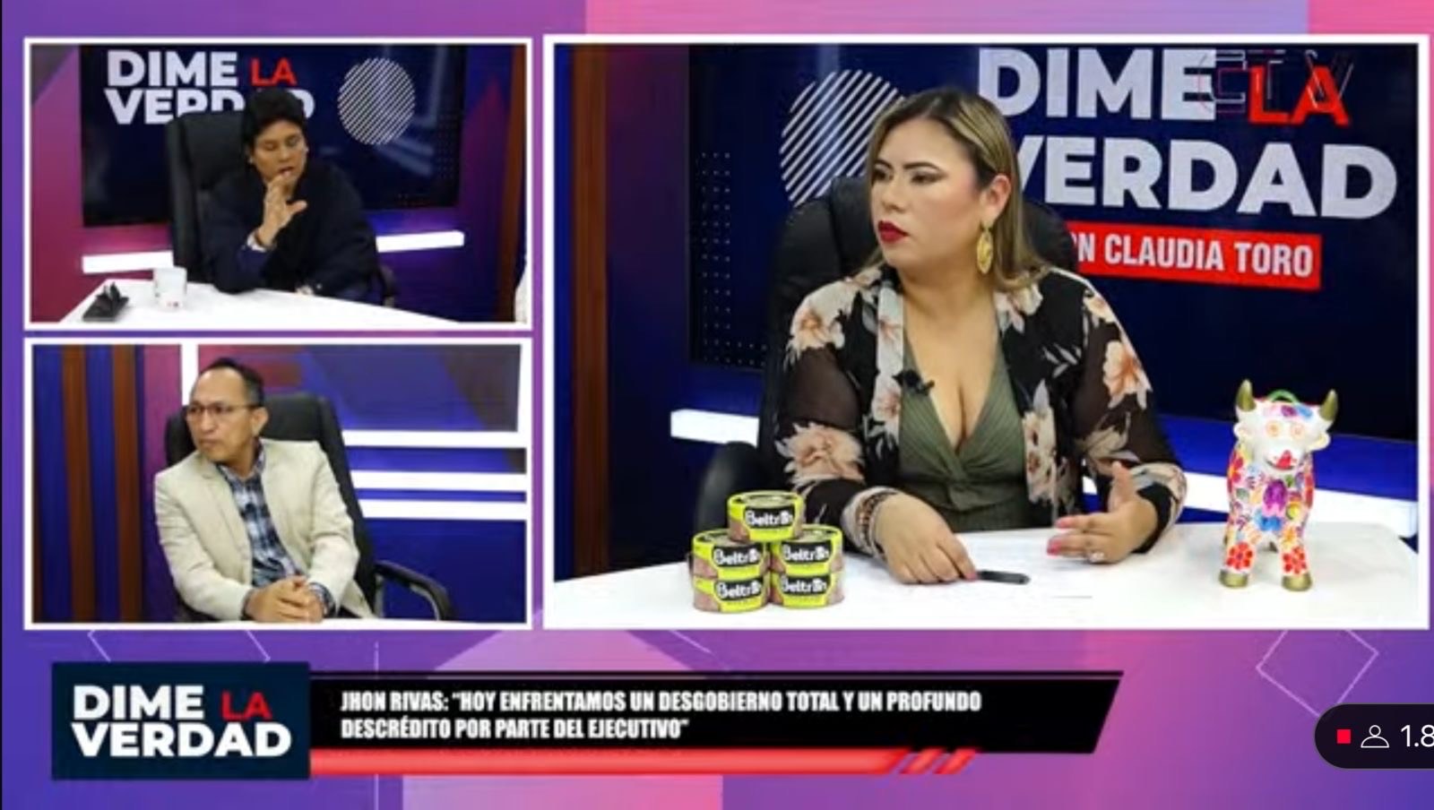 En una reciente edición nacional del programa “Dime la Verdad” de CTV Perú, conducido por la periodista Claudia Toro, el ingeniero y abogado Jhon Rivas, aspirante hacer candidato al Senado por Loreto para las elecciones de 2026, participó como analista político junto a la congresista arq. Norma Yarrow.
