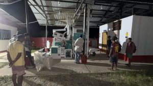 Esta tarde y parte de la noche, en el módulo de piladora de arroz ubicado en el embarcadero municipal, 50 parceleros beneficiarios del Proyecto Arroz de la comunidad de San Antonio pilaron 3 toneladas de arroz.
