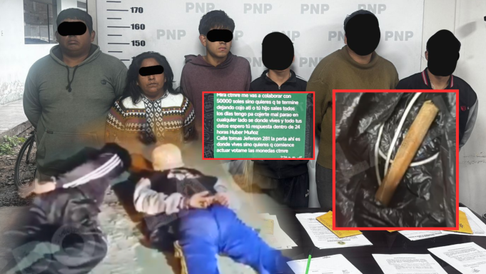 En el inmueble se incautaron los siguientes materiales: Un arma de fuego, Manuscritos con contenido extorsivo, cartuchos de dinamita, mecha lenta y fulminantes, y equipos telefónicos donde se encontraba uno de los números, el cual tiene más de dos denuncias por parte de un promotor de eventos y de una ama de casa, a quienes se les exigía S/10 mil para no atentar contra su vida.