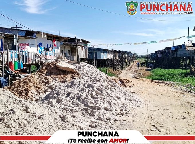 La Municipalidad Distrital de Punchana, a través de la Gerencia de Servicios Municipales, brindó apoyo a los vecinos de la calle 06 de agosto en el A.H. Delicia Manzur, con el objetivo de mejorar las condiciones de transitabilidad en la zona.
