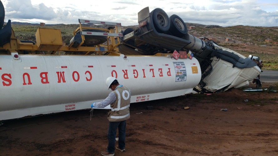 El Organismo de Evaluación y Fiscalización Ambiental (OEFA), entidad adscrita al Ministerio del Ambiente, supervisa las acciones de respuesta y remediación ambiental ejecutadas tras la volcadura de un camión cisterna de placas BA08461 / 4281LZE, que cuenta con una capacidad de carga de 9 510 galones y se encuentra bajo la titularidad de la empresa Trans Petróleo Bolivia S.R.L. Dicho evento ocurrió en la carretera binacional Ilo–Desaguadero, en el ámbito del distrito de Desaguadero, provincia de Chucuito, departamento de Puno, a escasos kilómetros de la línea fronteriza con Bolivia.