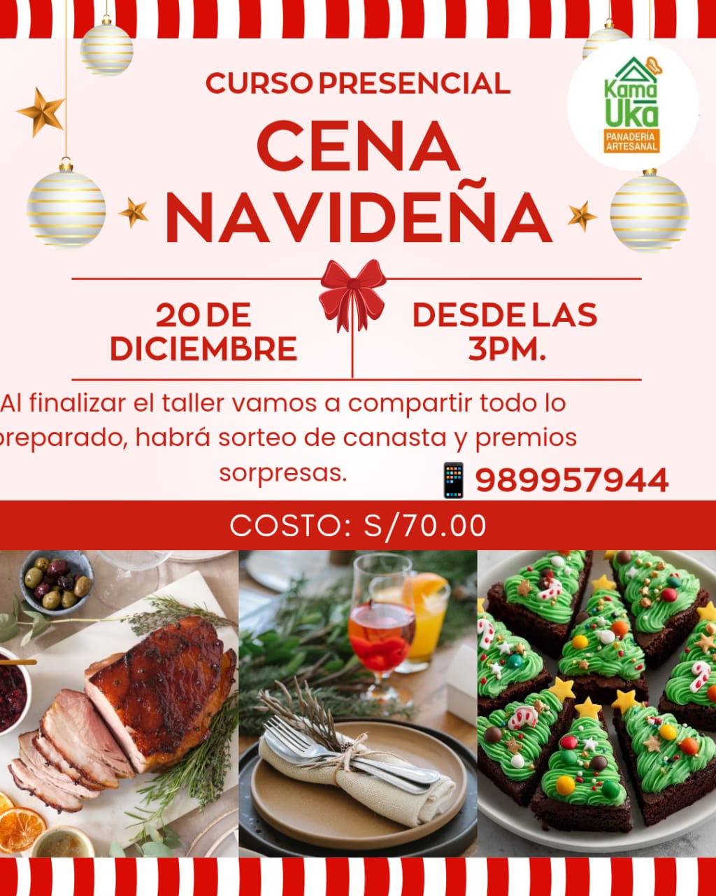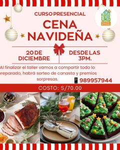 La emprendedora Perlita Celeste Torres Ríos informó que este sábado 20 se realizará el último taller presencial del año organizado por Kama Uka, dedicado a la preparación de una cena navideña completa. El curso incluirá técnicas para elaborar aderezos, rellenos, arroces, ensaladas, cócteles, chocolate y un postre, y estará a cargo de la especialista Marta da Silva. La actividad está dirigida a personas desde los 12 años y tendrá una duración aproximada de cinco horas.