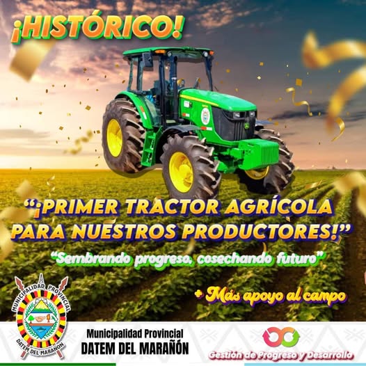 La Municipalidad Provincial de Datem del Marañón continúa impulsando el desarrollo agrícola con la adquisición del primer tractor agrícola destinado al fortalecimiento del Proyecto Arroz y Maíz.