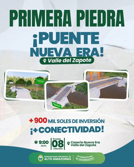 Inicio Institucionales ¡ ! PUENTE NUEVA ERA Institucionales ¡ ! PUENTE NUEVA ERA Por ProyContra - 05/09/2025 132 0 FacebookTwitterPinterestWhatsApp Vecino, este , a las : .., ven y participa de la ceremonia de colocación de la primera piedra e inicio de la construcción del moderno puente de . ¡Te esperamos! #MásObras #TrabajamosPorLaReivindicación #PrimeraPiedra Artículos relacionadosMás del autor FORTALECIENDO EL SERVICIO ALIMENTARIO ESCOLAR BOULEVARD DE REQUENA SUPERA EL 98% DE AVANCE Y POTENCIARÁ EL TURISMO EN LA CIUDAD ALCALDE OLMEX ESCALANTE PARTICIPA EN CEREMONIA Y DESFILE POR EL 204° ANIVERSARIO DE LA MARINA DE GUERRA DEL PERÚ Y 146° ANIVERSARIO DEL COMBATE... DEJA UNA RESPUESTA Cancelar respuesta Por favor ingrese su comentario! Por favor ingrese su nombre aquí ¡Has introducido una dirección de correo electrónico incorrecta! Por favor ingrese su dirección de correo electrónico aquí Guardar mi nombre, correo electrónico y sitio web en este navegador la próxima vez que comente. Δ