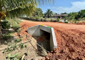 Mismos trabajos se vienen realizando en centro poblado Miguel Grau, ubicado en el kilómetro 40 del eje carretero, donde supervisamos la construcción de 02 alcantarillas más.