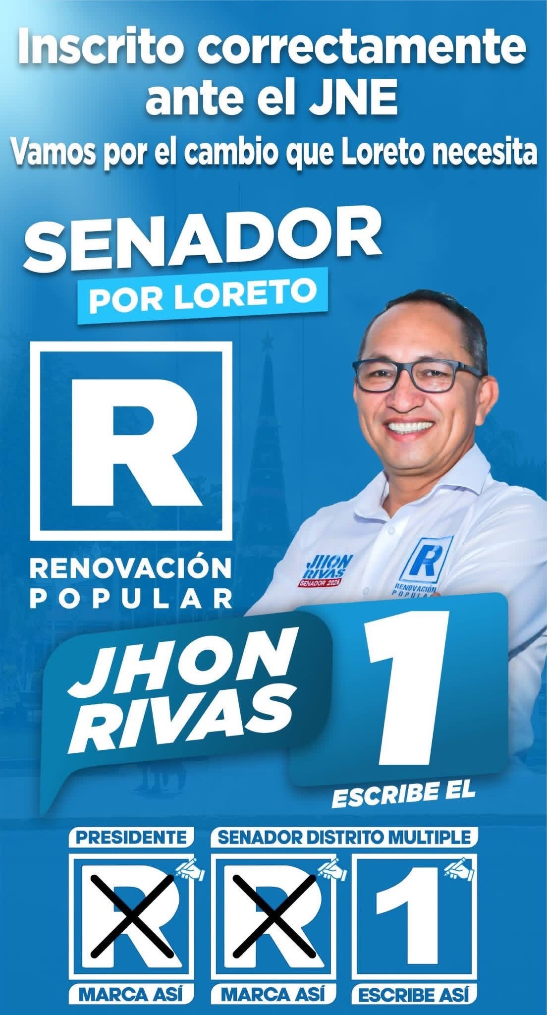 Todo esfuerzo altruista bien planificado encomendado a Dios y en beneficio de la población tiene su sana recompensa, y con alegría, humildad y responsabilidad he recibido la Resolución N° 01767-2025-JEE-MAYN/JNE emitida por el Jurado Electoral Especial de Maynas del Jurado Nacional de Elecciones del Perú, en donde resuelve mi inscripción oficial representando a la región Loreto como candidato en el distrito electoral múltiple al Senado del Congreso de la República, en la organización política Renovación Popular, donde es preciso marcar la “R” y escribir el número 1, para las Elecciones Generales del 12 de abril de este año.